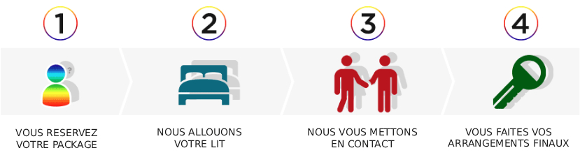 Le forfait hébergement partagé est disponible pour les personnes seules, les couples ou les groupes et permet d'économiser plus de 100 € par personne par rapport à la réservation d'un appartement spécifique.